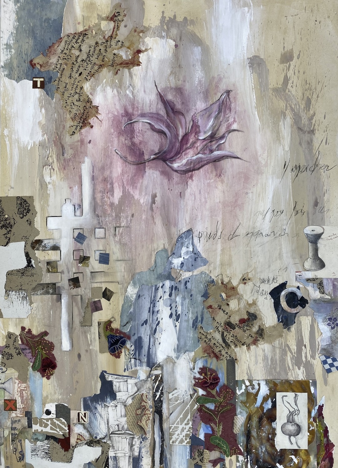 Technique mixte sur papier. Collage, peinture, graphite, 100 x 70 cm
