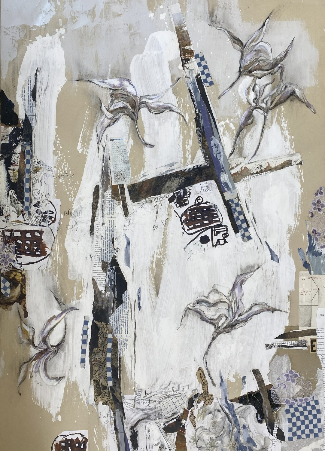 Technique mixte sur papier. Collage, peinture, graphite, 100 x 70 cm